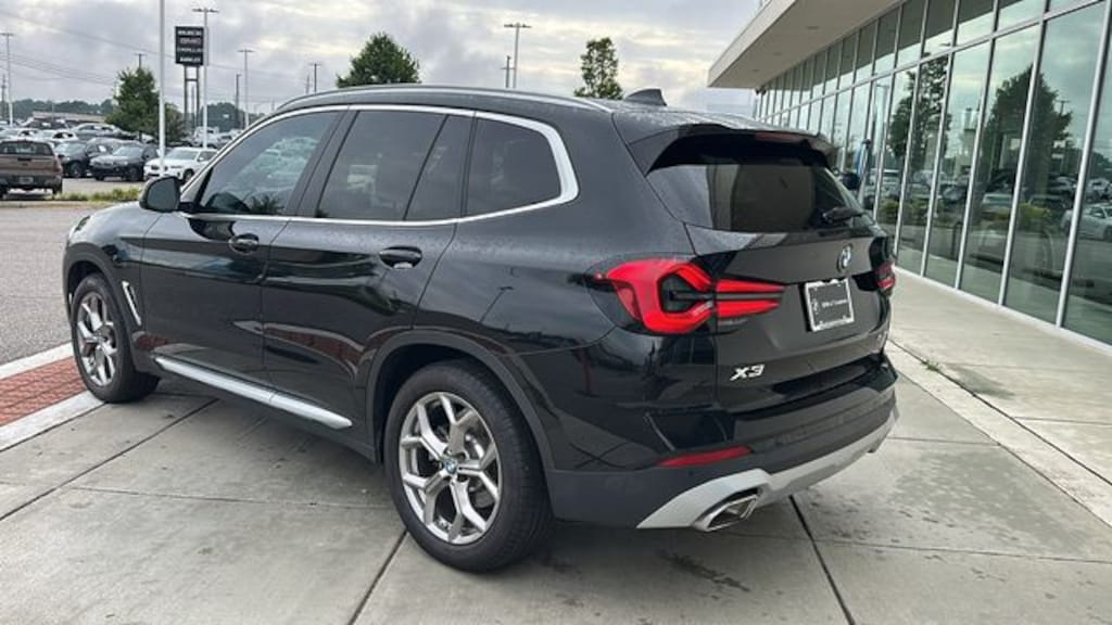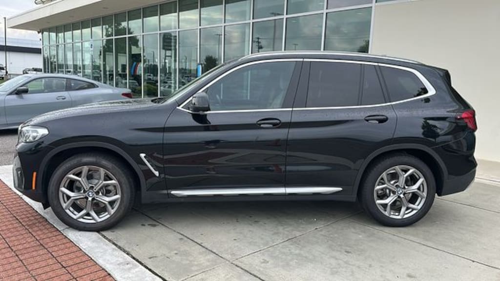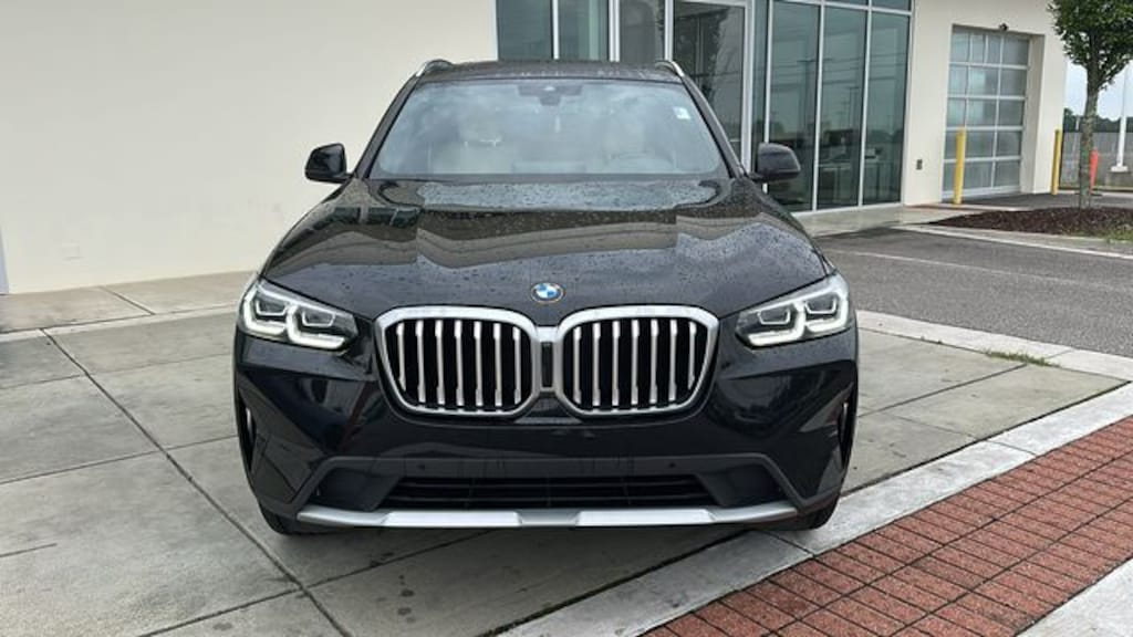 BMW of Tuscaloosa presents this 2022 BMW X3 xDrive30i in Black Sapphire Metallic exterior with Canberra Beige interior. The Vehicle is equipped with Connected Package Pro, Premium Package 2 (ZPA) (Gesture Control, Heated Front Seats, Heated Steering Wheel, Lumbar Support, Panoramic Moonroof (ZPA), and Reinforced Brakes), 8-Speed Automatic Sport, Navigation, Navigation System, 12 Speakers, 3.385 Axle Ratio, 4-Wheel Disc Brakes, ABS brakes, Air Conditioning, Alloy wheels, AM/FM Radio, AM/FM radio: SiriusXM with 360L, Apple CarPlay & Android Auto Compatibility, Auto High-beam Headlights, Auto-dimming door mirrors, Auto-dimming Rear-View mirror, Automatic temperature control, BMW Assist eCall, BMW TeleServices, Brake assist, Bumpers: body-color, Comfort Access Keyless Entry, ConnectedDrive Services, Delay-off headlights, Driver door bin, Driver vanity mirror, Dual front impact airbags, Dual front side impact airbags, Electronic Stability Control, Emergency communication system: BMW Assist eCall, Enhanced Bluetooth, Exterior Parking Camera Rear, Four wheel independent suspension, Front anti-roll bar, Front Bucket Seats, Front Center Armrest, Front dual zone A/C, Front reading lights, Fully automatic headlights, Garage door transmitter, Genuine wood dashboard insert, Genuine wood door panel insert, Heated door mirrors, Hi-Fi Sound System, Illuminated entry, Knee airbag, Live Cockpit Pro w/Navigation, Low tire pressure warning, Memory seat, Occupant sensing airbag, Outside temperature display, Overhead airbag, Panic alarm, Passenger door bin, Passenger vanity mirror, Perforated SensaTec Upholstery, Power door mirrors, Power driver seat, Power Front Seats, Power Liftgate, Power passenger seat, Power steering, Power windows, Radio data system, Rain sensing wipers, Rear air conditioning, Rear anti-roll bar, Rear reading lights, Rear seat center armrest, Rear window defroster, Rear window wiper, Remote Engine Start, Remote keyless entry, Roof rack: rails only, Security system, SiriusXM w/360L, Speed control, Speed-sensing steering, Speed-Sensitive Wipers, Split folding rear seat, Spoiler, Sport Seats, Sport steering wheel, Steering wheel mounted audio controls, Tachometer, Telescoping steering wheel, Tilt steering wheel, Traction control, Trip computer, Turn signal indicator mirrors, Variably intermittent wipers, Wheels: 19" x 7.5" Y-Spoke (Style 693), and WiFi Hotspot.
