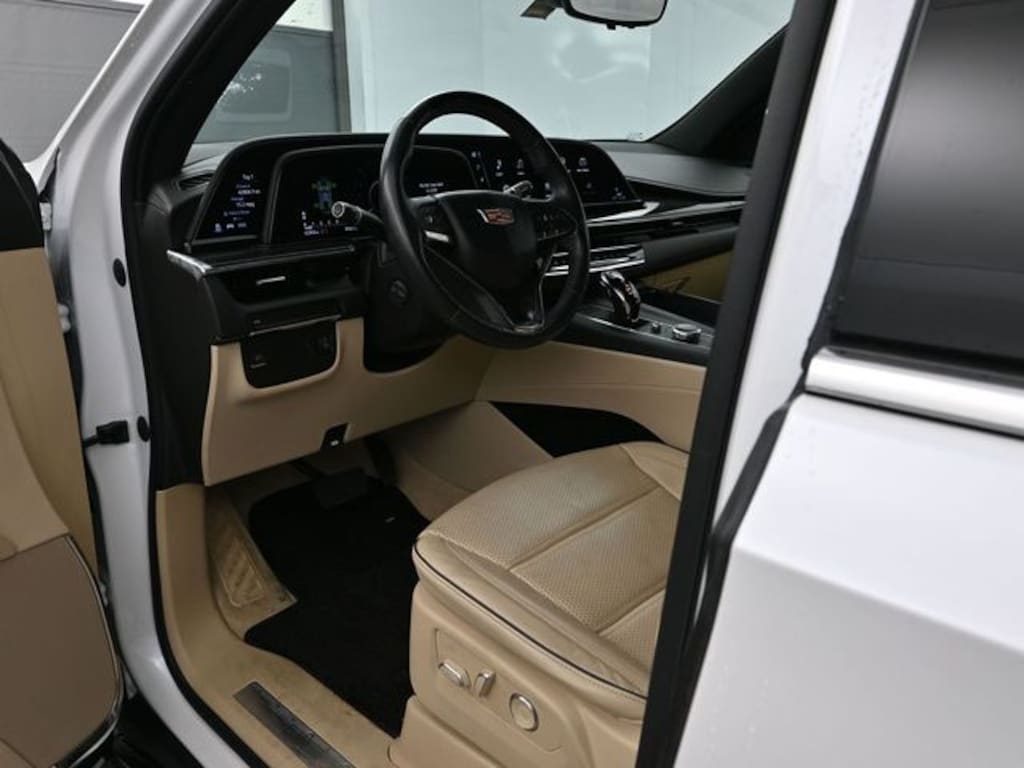 BMW of Tuscaloosa presents this 2023 Cadillac Escalade ESV Premium in Crystal White Tricoat exterior with Parchment With Jet Black Accents interior. The Vehicle is equipped with Preferred Equipment Group 1SB (Adaptive Cruise Control, AKG Studio 19-Speaker Audio System, Automatic Seat Belt Tightening, Door Lock & Latch Shields, Enhanced Automatic Emergency Braking, Enhanced Automatic Parking Assist, Glass Breakage Sensor, Heated & Ventilated Driver & Front Passenger Seats, Lane Change Alert w/Side Blind Zone Alert, Mechanical Limited-Slip Differential, Power Panoramic Tilt-Sliding Sunroof, Rear Camera Mirror, Rear Camera Mirror Washer, Rear Cross Traffic Alert, Reconfigurable Full-Color Head-Up Display, Reverse Automatic Braking, Running Board Assist Steps, Theft-Deterrent Alarm System, Vehicle Inclination Sensor, and Vehicle Interior Movement Sensor), 16.9" Diagonal OLED Infotainment Screen, 19 Speakers, 2-Presets Memory For Driver Seat Adjuster, 3 Years of OnStar & Connected Services Plan, 3.23 Axle Ratio, 3rd row seats: split-bench, 4-Way Power Driver Lumbar Seat Adjuster, 4-Way Power Front Passenger Lumbar Seat Adjuster, 4-Wheel Disc Brakes, 8-Way Power Driver Seat Adjuster, 8-Way Power Front Passenger Seat Adjuster, ABS brakes, Air Conditioning, Alloy wheels, AM/FM radio: SiriusXM with 360L, Apple CarPlay/Android Auto, Audio memory, Auto High-beam Headlights, Auto tilt-away steering wheel, Auto-dimming door mirrors, Automatic temperature control, Brake assist, Bumpers: body-color, Compass, Delay-off headlights, Driver door bin, Driver vanity mirror, Dual front impact airbags, Dual front side impact airbags, Electronic Stability Control, Emergency communication system: OnStar and Cadillac connected services capable, Exterior Parking Camera Rear, Four wheel independent suspension, Front anti-roll bar, Front Bucket Seats, Front Center Armrest w/Storage, Front dual zone A/C, Front reading lights, Fully automatic headlights, Garage door transmitter, HD Radio, Heads-Up Display, Heated door mirrors, Heated Driver & Front Passenger Seats, Heated front seats, Heated rear seats, Heated steering wheel, Illuminated entry, Leather Seating Surfaces w/Mini-Chevron Perf Inserts, Low tire pressure warning, Memory seat, Navigation System, Not Equipped w/2nd Row Express-Up Window Control, Not Equipped w/Wheel Locks (LPO), Occupant sensing airbag, Outside temperature display, Overhead airbag, Overhead console, Panic alarm, Passenger door bin, Passenger vanity mirror, Power door mirrors, Power driver seat, Power Liftgate, Power moonroof, Power passenger seat, Power steering, Power windows, Premium Smooth Ride Suspension, Radio data system, Radio: AM/FM w/Navigation, Rain sensing wipers, Rear air conditioning, Rear anti-roll bar, Rear reading lights, Rear Seat Entertainment System, Rear window defroster, Rear window wiper, Remote keyless entry, Security system, SiriusXM w/360L, Speed control, Split folding rear seat, Spoiler, Steering wheel memory, Steering wheel mounted audio controls, Super Cruise, Tachometer, Teen Driver, Telescoping steering wheel, Tilt steering wheel, Traction control, Trip computer, Turn signal indicator mirrors, Variably intermittent wipers, Ventilated front seats, Voltmeter, Wheel Locks, Wheels: 22" 14-Spoke Alloy w/Polished Finish, and Wireless Apple CarPlay/Wireless Android Auto.
