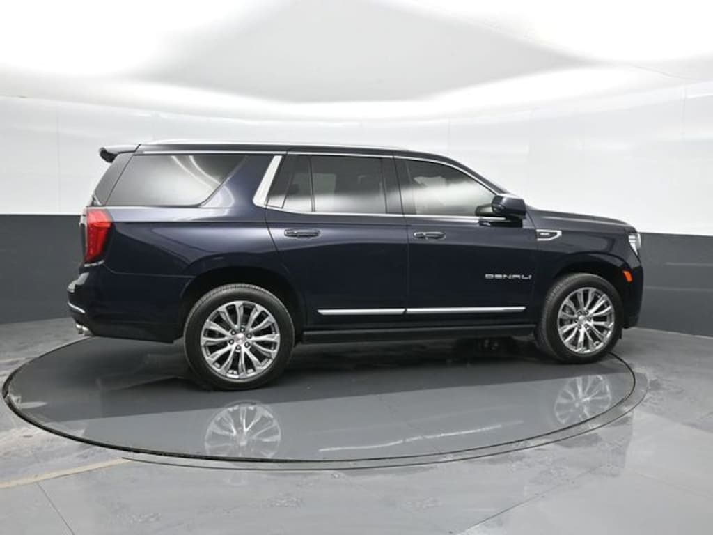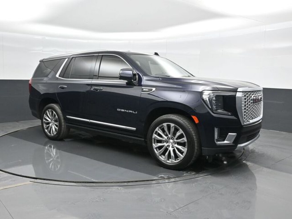 BMW of Tuscaloosa presents this 2023 GMC Yukon Denali in Midnight Blue Metallic exterior with Jet Black interior. The Vehicle is equipped with Preferred Equipment Group 5SA (15" Diagonal Multi-Color Head-Up Display, 2 Presets For Outside Rearview Mirrors, 3 Years of GMC Connected Services, 3 Years of OnStar Safety & Security, 3rd Row 60/40 Power-Folding Split-Bench Seat, Bose 14-Speaker Surround w/CenterPoint, Bright Front & Rear Door Sill Plates, Chrome Door Handles w/Body-Color Strip, Dual Exhaust System, Enhanced Automatic Emergency Braking, Floor Console, Galvano Bodyside Moldings, Hands-Free Power Programmable Rear Liftgate, HD Surround Vision, Heated & Ventilated Driver & Front Passenger Seats, Heated 2nd Row Outboard Position Seats, Heated Driver & Front Passenger Seats, Heated Steering Wheel, Hill Descent Control, Inside Rear-View Auto-Dimming Mirror, Outside Heated Power-Adjustable Mirrors, Power Release 2nd Row Bucket Seats, Power Tilt & Telescopic Steering Column, Rear Pedestrian Alert, Safety Alert Seat, Universal Home Remote, and Wireless Charging), 4WD, Dual-Pane Panoramic Power Sunroof, Navigation System, Power Liftgate, Ventilated front seats, 14 Speakers, 3 Years of OnStar Safety & Security (DISC), 3.23 Rear Axle Ratio, 3rd row seats: split-bench, 4-Wheel Disc Brakes, ABS brakes, Adaptive Cruise Control, Adaptive suspension, Air Conditioning, Alloy wheels, AM/FM radio: SiriusXM with 360L, AM/FM Stereo, Apple CarPlay/Android Auto, Auto High-beam Headlights, Auto-dimming door mirrors, Auto-dimming Rear-View mirror, Auto-leveling suspension, Automatic Emergency Braking, Automatic temperature control, Bodyside moldings, Brake assist, Bumpers: body-color, Compass, Delay-off headlights, Deleted 3 Years of OnStar Safety & Security, Driver door bin, Driver vanity mirror, Dual front impact airbags, Dual front side impact airbags, Electronic Stability Control, Emergency communication system: OnStar and GMC connected services capable, Following Distance Indicator, Forward Collision Alert, Four wheel independent suspension, Front & Rear Park Assist, Front anti-roll bar, Front Bucket Seats, Front Center Armrest, Front dual zone A/C, Front fog lights, Front Pedestrian Braking, Front reading lights, Fully automatic headlights, Garage door transmitter, Heads-Up Display, Heated door mirrors, Heated front seats, Heated rear seats, Heated steering wheel, Illuminated entry, IntelliBeam Automatic High Beam On/Off, Lane Change Alert w/Side Blind Zone Alert, Lane Keep Assist w/Lane Departure Warning, Low tire pressure warning, Magnetic Ride Control Suspension, Memory seat, Occupant sensing airbag, Outside temperature display, Overhead airbag, Overhead console, Panic alarm, Passenger door bin, Passenger vanity mirror, Perforated Leather Seating Surfaces, Power door mirrors, Power driver seat, Power passenger seat, Power steering, Power windows, Power-Retractable Assist Steps, Rain sensing wipers
