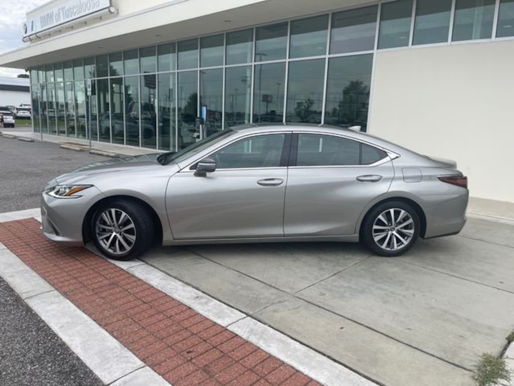 BMW of Tuscaloosa presents this 2021 Lexus ES 350 in Atomic Silver exterior with Flaxen interior. The Vehicle is equipped with Premium Package (Heated & Ventilated Seats, Perforated NuLuxe Seat Trim (LD), Power Tilt/Telescoping Steering Wheel w/Memory, and Rain Sensing Wipers), Flaxen w/Linear Espresso Wood Trim w/Genuine Leather Seat Trim, Apple CarPlay/Android Auto, Exterior Parking Camera Rear, Power moonroof, 10 Speakers, 10-Way Power Adjustable Front Seats, 4-Wheel Disc Brakes, ABS brakes, Air Conditioning, Alloy wheels, AM/FM radio: SiriusXM, Auto High-beam Headlights, Auto-dimming door mirrors, Auto-dimming Rear-View mirror, Automatic temperature control, Brake assist, Bumpers: body-color, CD player, Compass, Delay-off headlights, Driver door bin, Driver vanity mirror, Dual front impact airbags, Dual front side impact airbags, Electronic Stability Control, Emergency communication system, Four wheel independent suspension, Front anti-roll bar, Front Bucket Seats, Front Center Armrest, Front dual zone A/C, Front reading lights, Fully automatic headlights, Garage door transmitter: HomeLink, Illuminated entry, Knee airbag, Leather Shift Knob, Leather steering wheel, Low tire pressure warning, Occupant sensing airbag, Outside temperature display, Overhead airbag, Overhead console, Panic alarm, Passenger door bin, Passenger vanity mirror, Perforated NuLuxe Seat Trim, Power door mirrors, Power driver seat, Power passenger seat, Power steering, Power windows, Radio data system, Radio: Multimedia System w/8" Color Display, Rear anti-roll bar, Rear reading lights, Rear seat center armrest, Rear side impact airbag, Rear window defroster, Remote keyless entry, Security system, Speed control, Speed-sensing steering, Steering wheel mounted audio controls, Tachometer, Telescoping steering wheel, Tilt steering wheel, Traction control, Trip computer, Turn signal indicator mirrors, Variably intermittent wipers, and Wheels: 17" x 7.5J Split 10-Spoke Aluminum Alloy.